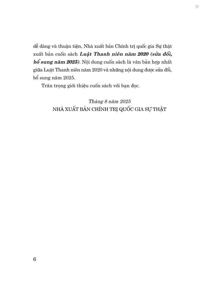 Luật Thanh niên năm 2020 (sửa đổi, bổ sung năm 2025) Khổ 13x19cm Năm 2025
