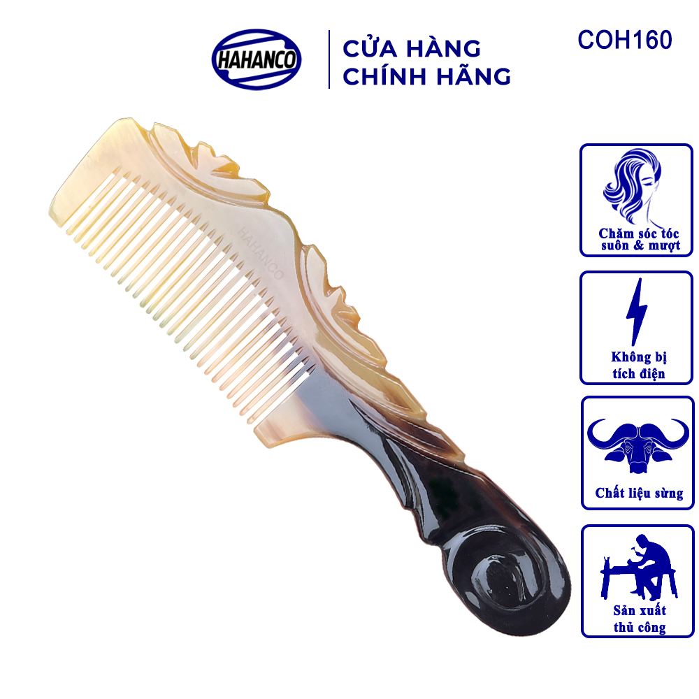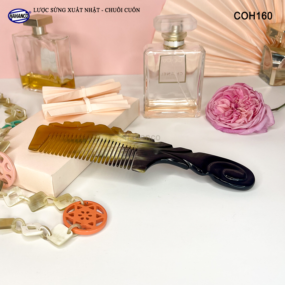 Lược Sừng Vân Nưa Chuôi Cuốn HAHANCO Họa Tiết Uốn Lượn Sắc Sảo - 0966218866