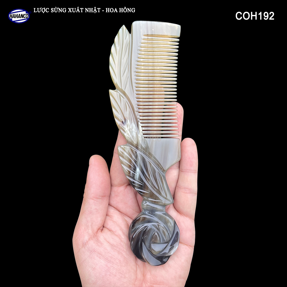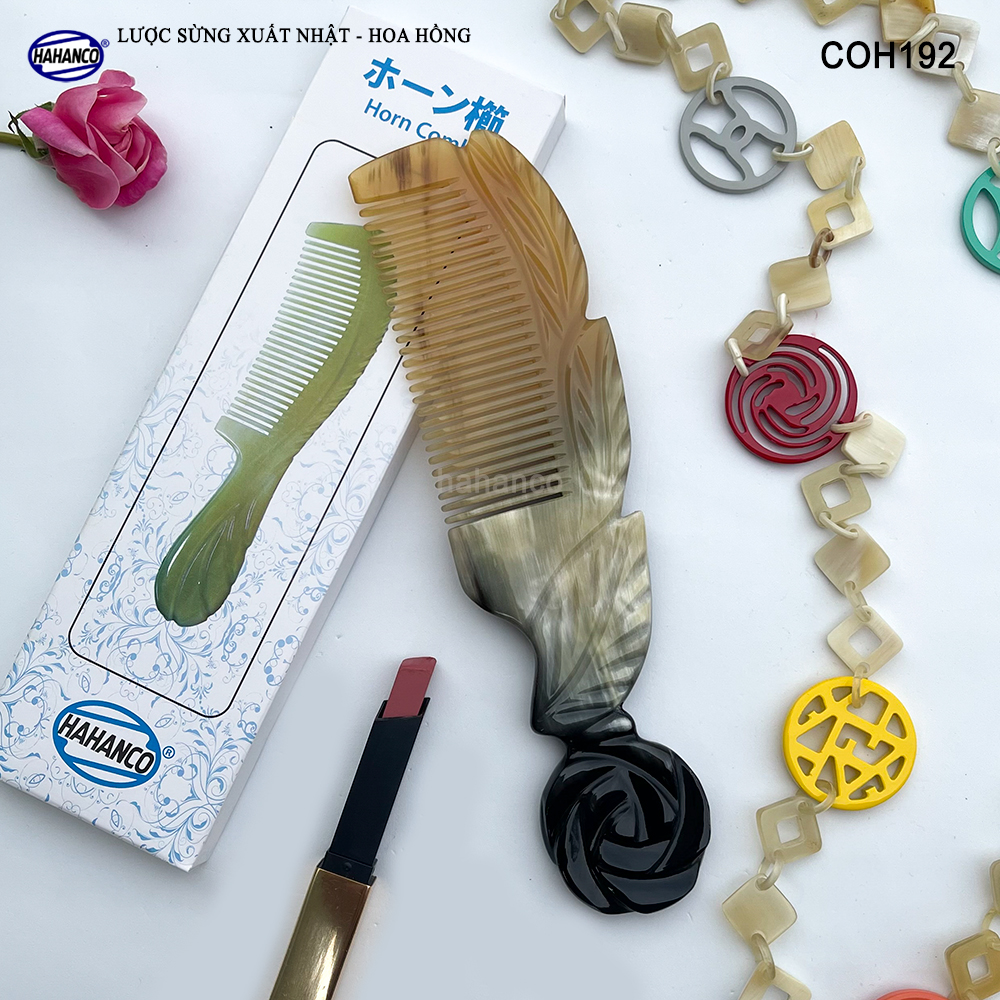 Mua tại TiktokNgười Việt dùng hàng Việt, ủng hộ để duy trì nghề và phát triển nghề thủ công tại các vùng quê. ️ Video chi tiết sản phẩm ️ Giải mã lược sừng do VTV thực hiện Lược sừng xuất khẩu sang thị trường Nhật Bản - EU - Mỹ. - Đây là mẫu lược sừng VIP màu vân nưa, được thiết kế hình bông hoa hồng biểu tượng của tình yêu, làm quà tặng rất ý nghĩa, với kích thước lớn, phù hợp với toàn bộ người sử dụng, có thể để bàn trang điểm rất sang. Sản xuất với nhiều công đoạn phức tạp, Được các nghệ nhân của HAHANCO thổi hồn vào chiếc lược này, tạo ra các họa tiết và đường nét uốn lượn sắc sảo, làm cho chiếc lược cổ điển không còn nhàm chán mỗi khi bạn cầm trên tay. Những chiếc răng lược được các bàn tay khéo léo mài dũa từng chiếc một cẩn thận để đạt được độ nhẵn bóng, khi chải tóc sẽ không làm gãy và rụng tóc. MÔ TẢ SẢN PHẨM: - Mã Số: COH192 (Lược Hoa Hồng) - Số lượng: 1 chiếc - Kích thước: Dài 20 x 6cm (có sai số) - Chất liệu: Sừng bò Châu Phi nhập khẩu. - Màu sắc: Đây là mẫu lược sừng có màu sắc tự nhiên đặc biệt, trên thân lược có nhiều màu khác nhau (Trắng + đen vân nưa màu sừng nguyên bản) mỗi chiếc 1 màu, không có chiếc nào giống nhau (giao ngẫu nhiên)