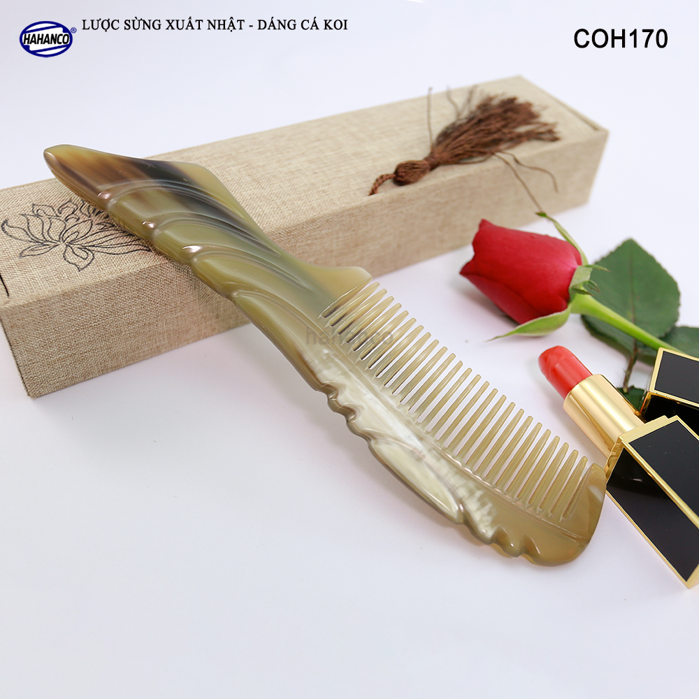 Lược sừng xuất khẩu sang thị trường Nhật Bản, EU, US. Mẫu lược sừng COH107 được design bởi Kazuaki Hirata (Tokyo, Nhật), nhà thiết kế Kazuaki đã lấy ý tưởng từ chú cá Koi bé
