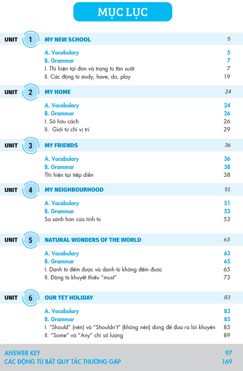 - Nội dung được thiết kế sinh động, logic dễ nhớ Cuốn sách giúp bạn học nhanh chóng ghi nhớ từ vựng có trong mỗi bài học thông qua hình ảnh minh họa và ví dụ cụ thể Hệ thống kiến thức ngữ pháp có trong bài học giúp các em nắm chắc cấu trúc ngữ pháp, sử dụng ngữ pháp dễ dàng với ví dụ chi tiết