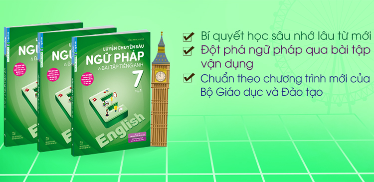 - Tích hợp nhiều mẹo giải hay, dễ dàng vận dụng, dễ nhớ sẽ giúp em làm bài nhanh hơn, đạt điểm cao hơn Luyện Chuyên Sâu Ngữ Pháp Và Bài Tập Tiếng Anh 7 Tập 1 (Chương Trình Mới) phù hợp với tất cả các đối tượng học sinh có học lực từ trung bình đến khá, giỏi. Cuốn sách sẽ luôn là người bạn đồng hành giúp em chinh phục bài kiểm tra, bài thi Tiếng Anh 7.