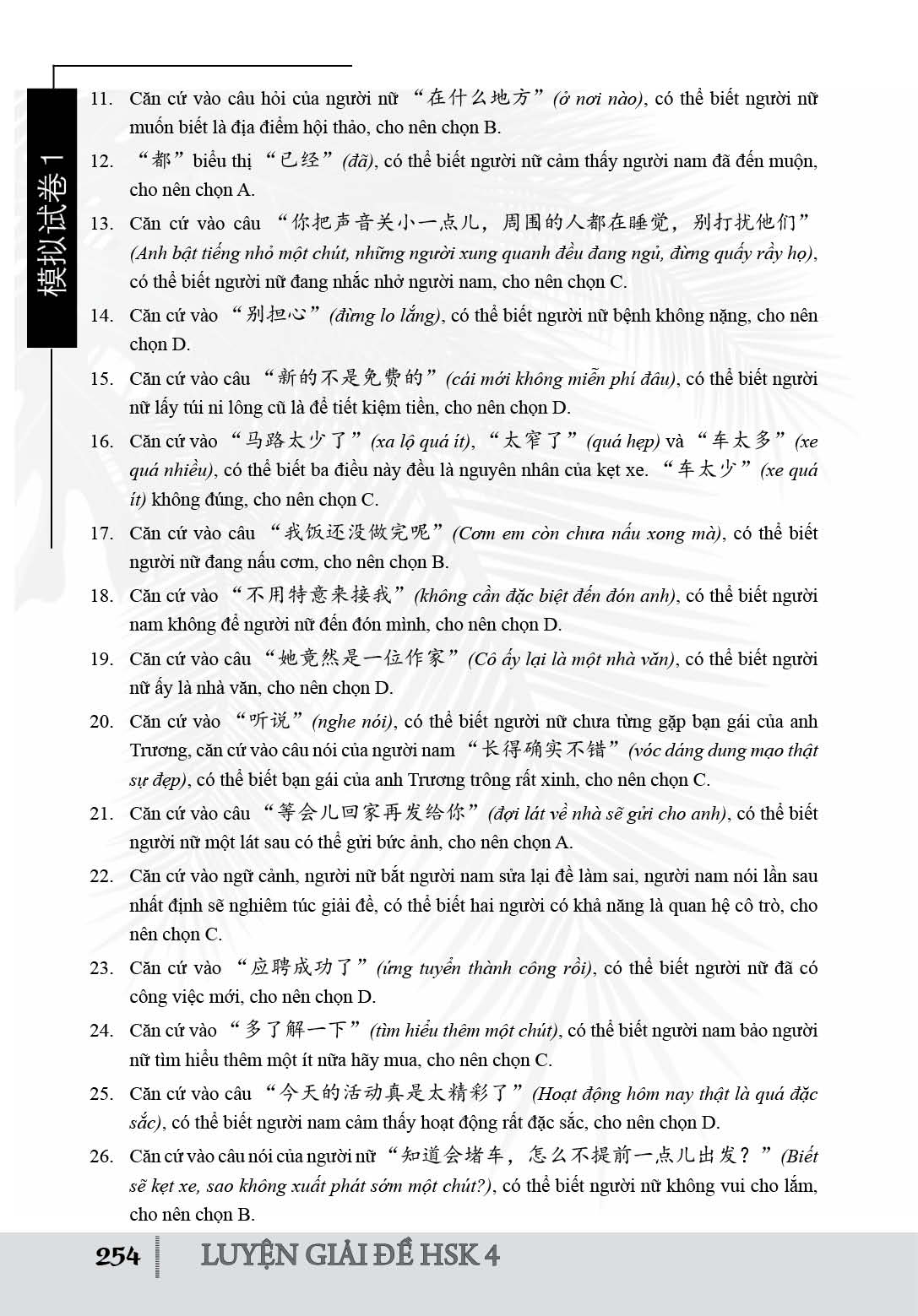 - Phần 2: Đề thi mô phỏng (cung cấp 12 đề thi mô phỏng HSK cấp 4)