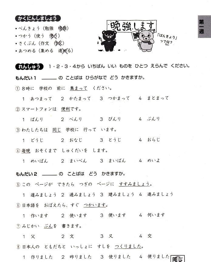 Đề thi JLPT N4 tháng 7 năm 2017 phần hán tự, từ vựng