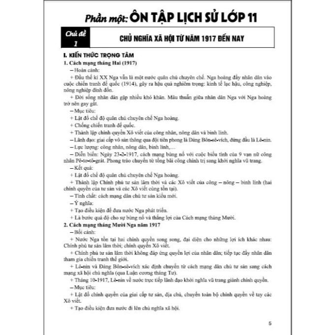 tVề tỉ lệ câu hỏi theo chương trình và nội dung kiến thức cần ôn luyện, học sinh cần tập trung nhiều hơn vào những chủ đề ở lớp 12 (chiếm khoảng 85%) và một phần của lớp 11 (chiếm khoảng 15%). Nhằm giúp các em học sinh ôn luyện thi Tốt nghiệp THPT theo hướng đánh giá năng lực môn Lịch sử đạt kết quả cao nhất, tác giả biên soạn sách
