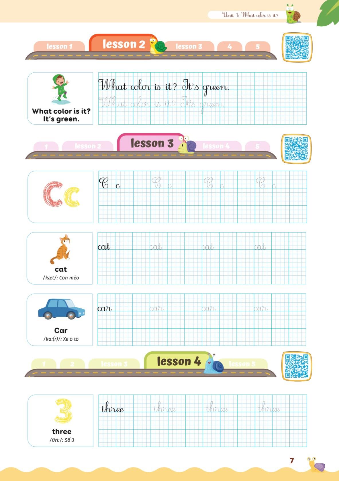 Kèm sau mỗi bài học là những hoạt động thực hành thú vị, các con vừa được ôn lại từ vựng hiệu quả, vừa được thoải mái thư giãn. Phần đáp án chi tiết và trình bày dễ hiểu dễ dàng cho con đối chiếu, đánh giá, tự chấm điểm bản thân, rèn luyện kĩ năng tự học ngay từ bé.