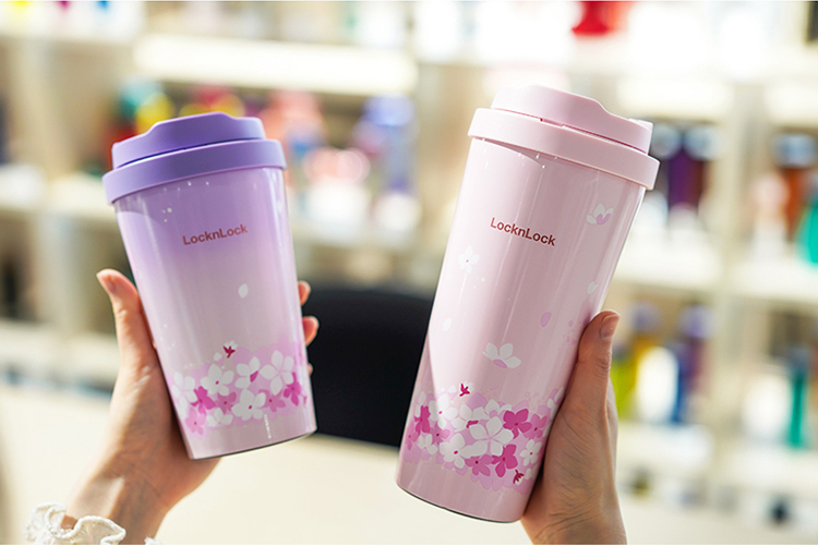 Ly giữ nhiệt LocknLock 550ml LHC3249 Hoa anh đào mở nắp 1 chạm, chất liệu thép không gỉ