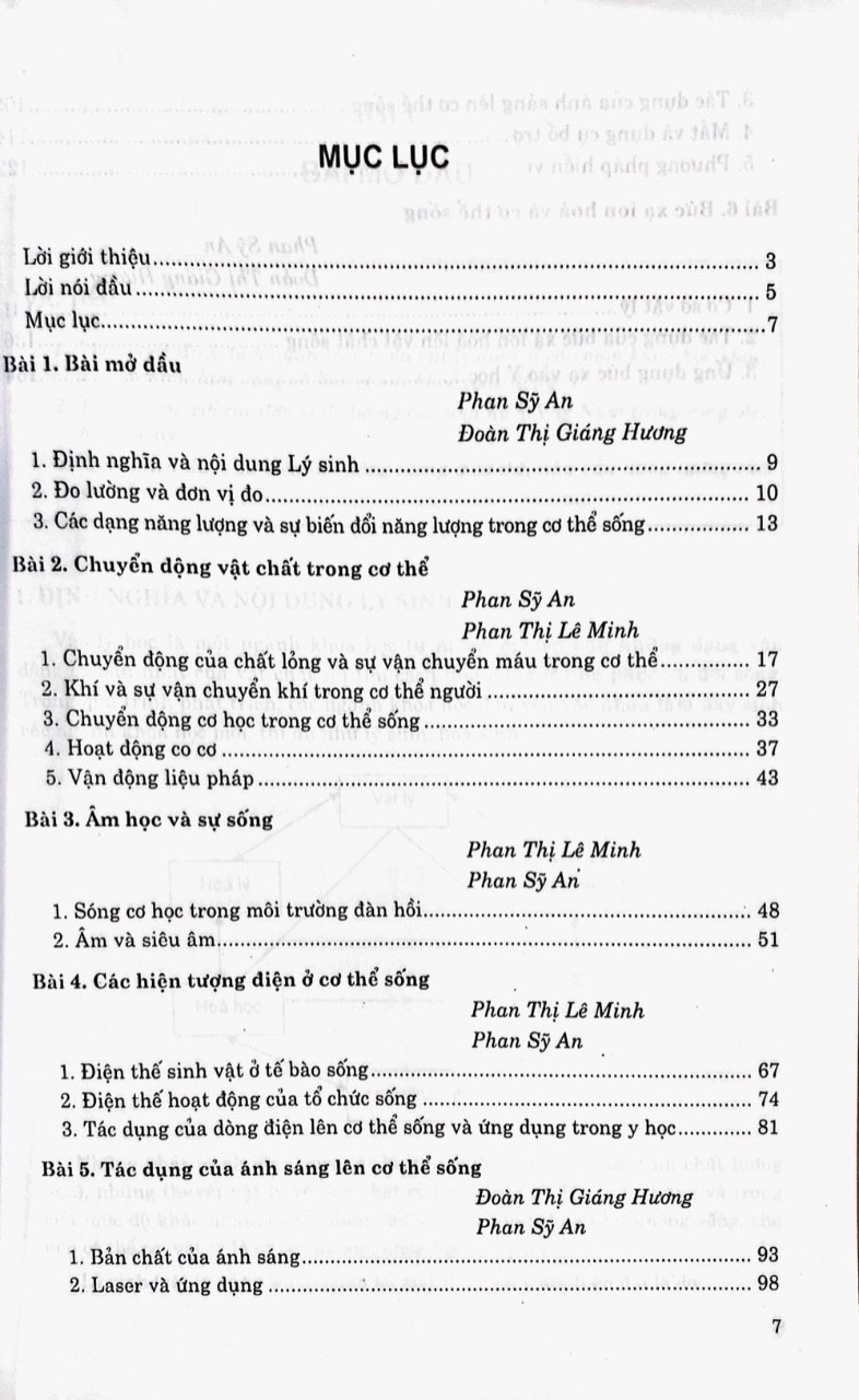 Chương trình Lý sinh được dạy tại trường Đại học Thăng Long, Hà Nội từ năm 2006. Mục tiêu của chương trình này là giúp sinh viên: – Phát biểu dúng một số định luật vật lý cơ bản có liên quan nhiều đến công việc sau này trong chăm sóc và bảo vệ sức khoẻ cho người bệnh. - Trình bày các quá trình và tác dụng của một số hiện tượng vật lý cơ bản xảy ra trong cơ thể sống và ứng dụng các hiện tượng vật lý đó nhằm mục đích chăm sóc sức khoẻ và bảo vệ môi trường. - Trình bày được nguyên lý và cách ứng dụng của các kỹ thuật vật lý chính trong công tác điều dưỡng và chăm sóc sức khoẻ. Do đối tượng phục vụ chính là các sinh viên năm thứ nhất khoa Điều dưỡng, Trường Đại học Thăng Long, nên giáo trình được viết tương đối đơn giản, không dùng nhiều công thức vật lý và công cụ toán học, chỉ yêu cầu người đọc có kiến thức phổ thông trung học về vật lý và sinh học. Giáo trình Lý sinh này được viết với thời lượng môn học là 2 đơn vị học trình (27 tiết) theo quy định trong khung chương trình của nhà trường. Cuốn sách cũng có thể có ích cho các học viên khác thuộc các chuyên ngành Y, sinh học nhằm mục đích nâng cao các kiến thức lý sinh cơ bản để đi vào các bài giảng cao hơn của các chuyên ngành khác. Trong quá trình biên soạn sách, các tác giả đã tham khảo và trích dẫn một phần trong các giáo trình Vật lý – Lý sinh của Bộ môn Y vật lý – Lý sinh, Trường Đại học Y Hà Nội. Nhân dịp cuốn sách được xuất bản, Chủ biên cùng những người biên soạn xin chân thành cảm ơn tất cả các thầy, cô, các anh chị đồng nghiệp và các bạn độc giả góp ý cho chúng tôi để cuốn sách được hoàn thiện trong lần xuất bản