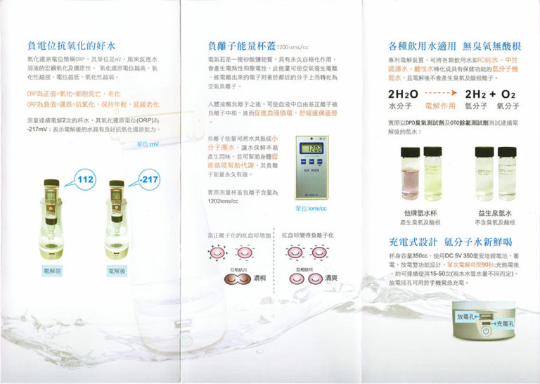 Nồng độ Hydro hòa tan: 1400ppb Vật liệu nắp: AS Vật liệu bình: ABS Kích thước: Chiều cao 16,4 cm× đường kính 7,5 cm. Phương pháp tạo: Phương pháp điện phân DC
