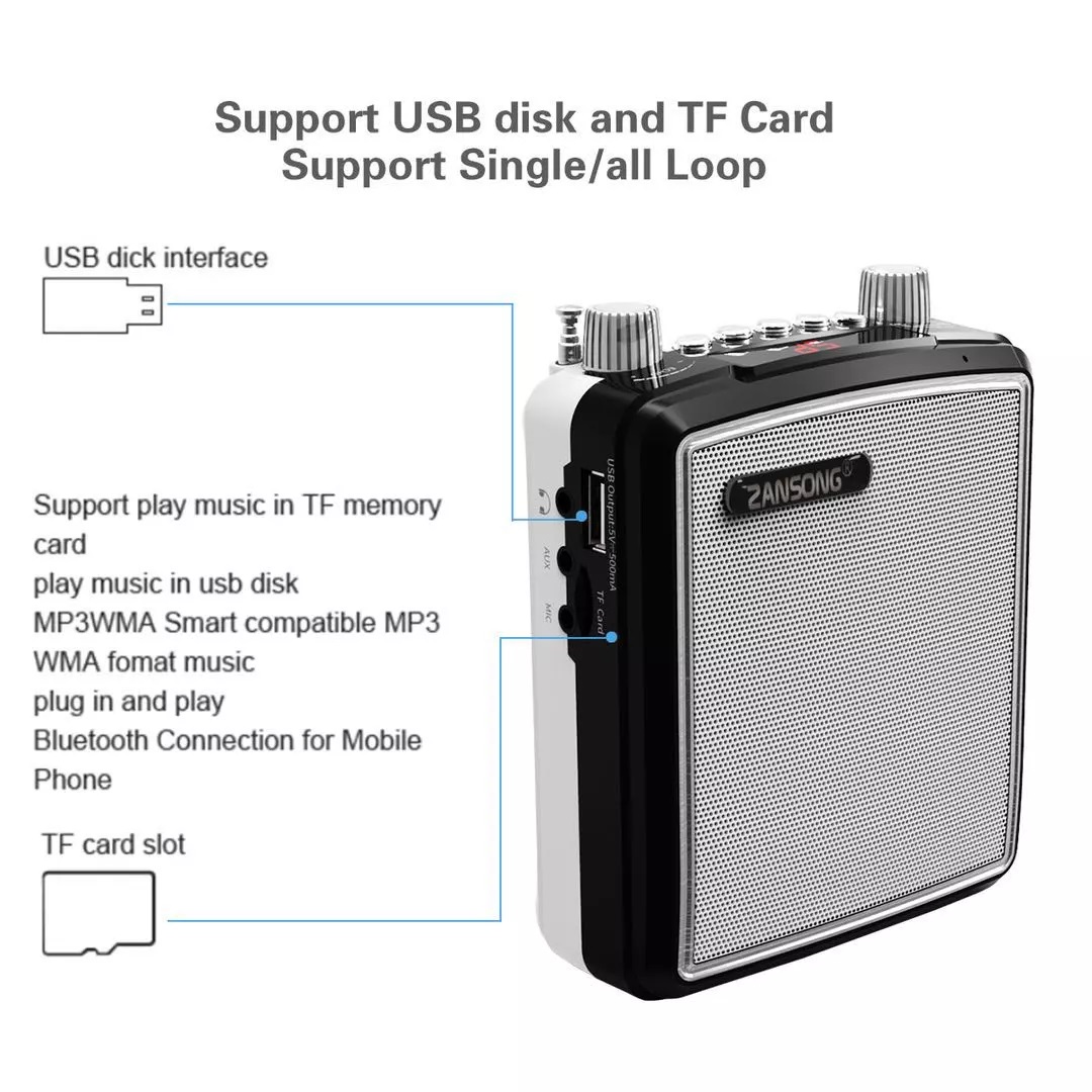 LOA TRỢ GIẢNG ZANSONG M80 - MÁY TRỢ GIẢNG KÈM MICRO CÀI TAI KHÔNG DÂY - KẾT NỐI BLUETOOTH 4.2, AUX, USB, SD CARD, FM - CÔNG SUẤT 10W - CÓ ECHO HÁT KARAOKE DỄ
