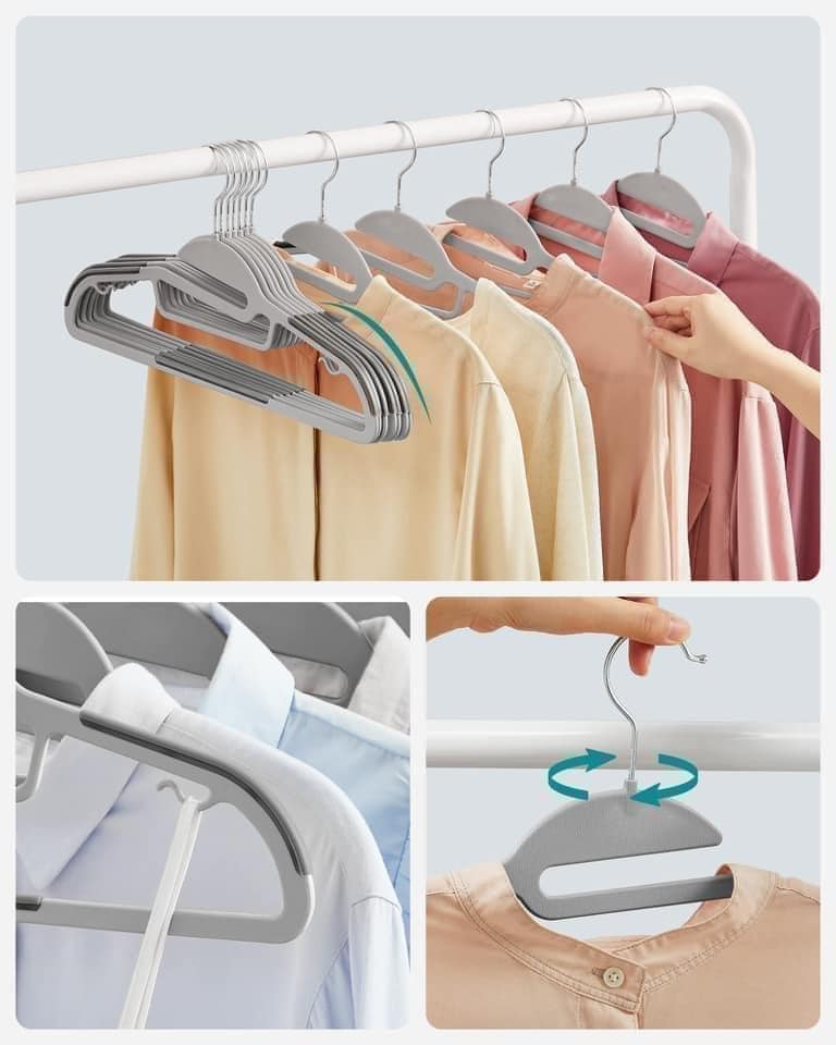 Tủ quần áo của bạn có bị bung ra ở các đường nối không? Quần áo của bạn có tiếp tục trượt khỏi móc áo không? Móc treo quần áo mỏng và chống trượt của SONGMICS giúp bạn giải quyết những vấn đề này và tạo thêm không gian lưu trữ quần áo