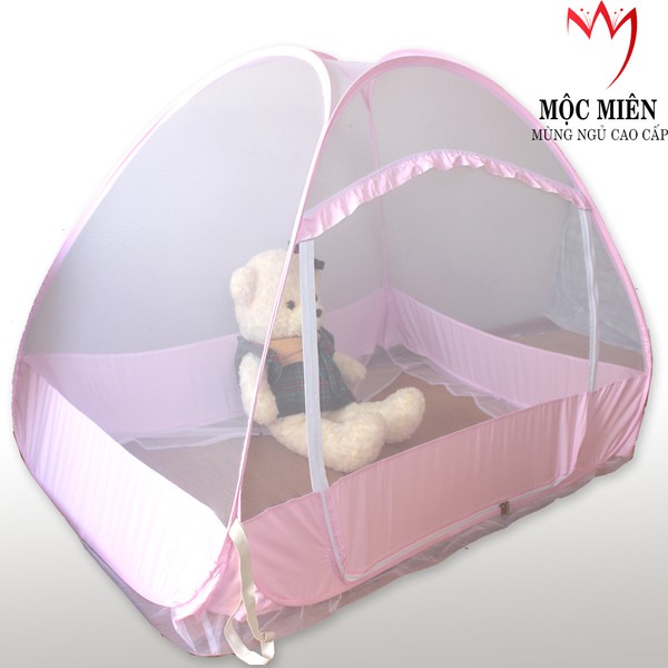 MÀN CHỤP , MÙNG CHỤP CAO CẤP MỘC MIÊN ĐỈNH RỘNG : Màn chụp tự bung cao cấp Mộc Miên đỉnh rộng trắng viền hồng loại 1,6m x2m - 3 cửa : Xuất xứ :