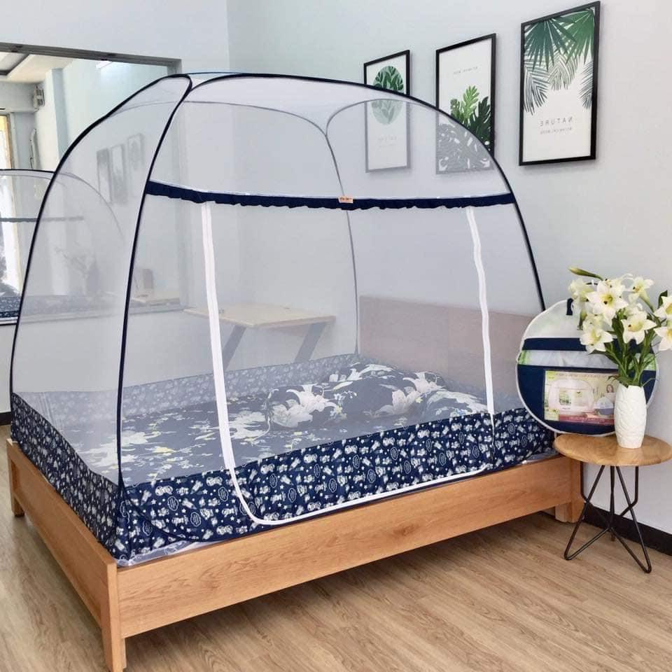 Kiểu dáng: Đỉnh rộng, có 2 cửa ra vào, có viền chân là từ vải nylon thay vì lưới mùng ( giúp bảo vệ 100% khi để tay chân chạm sát mùng)