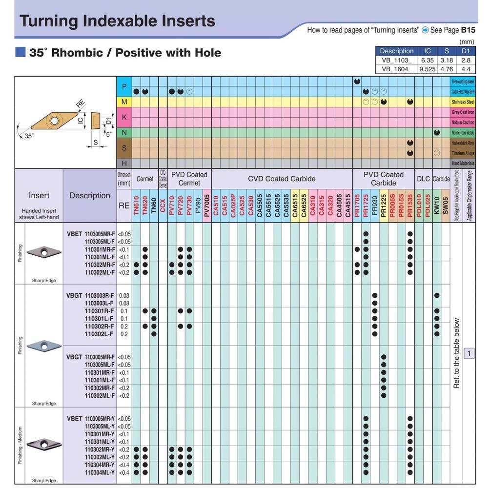 Mảnh dao tiện lỗ phủ PVD Kyocera Model VBGT110301R-Y PR930 Hàng Chính Hãng Chất Lượng Uy Tín