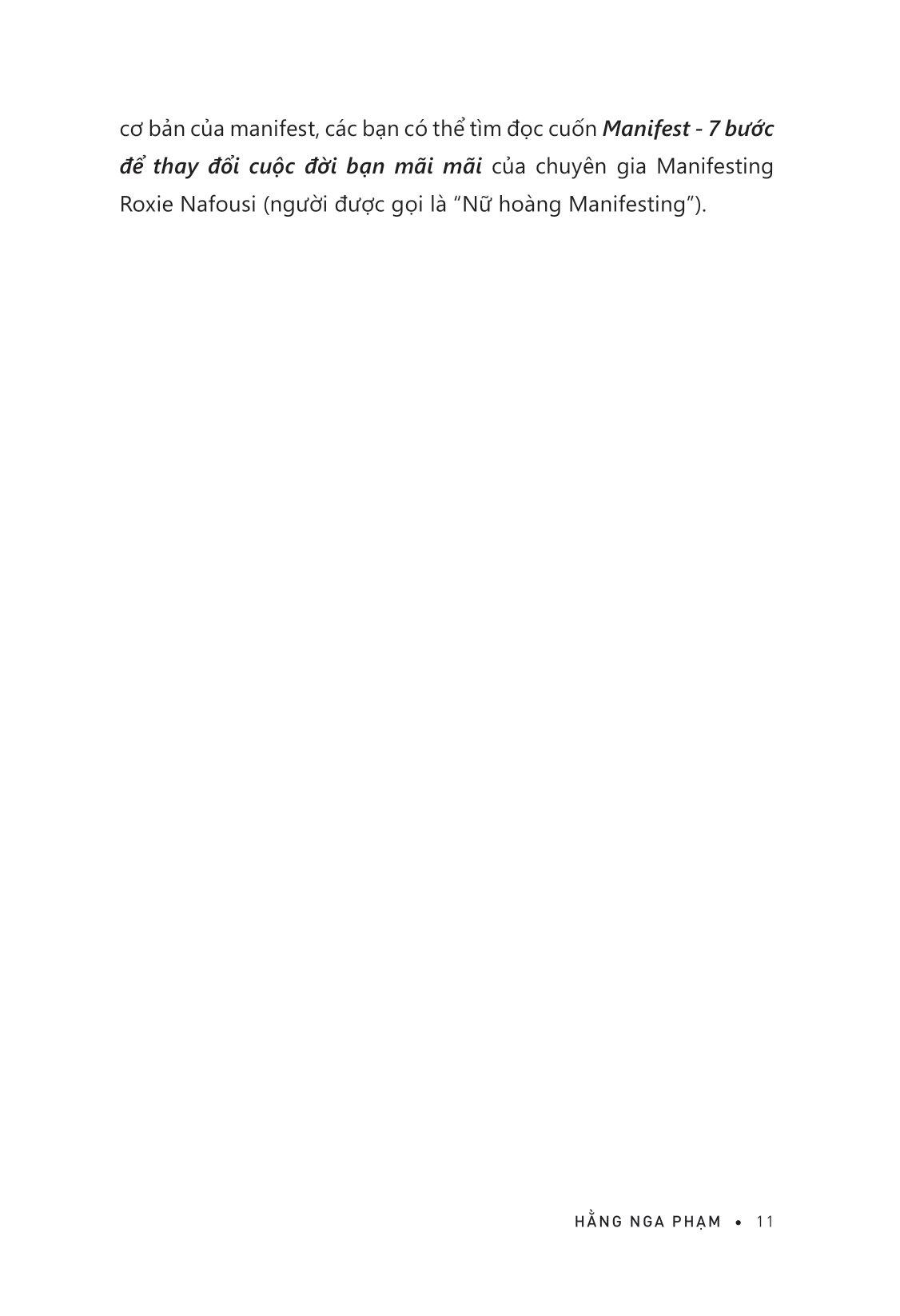 “Cuốn sách này có tất cả những gì tôi đã học, đã đọc, đã nghiệm lý, đi kèm với tất cả những kinh nghiệm tôi đã trải qua về Manifest ước mơ. Tôi ước gì tôi đã đọc được một cuốn sách tương tự như thế này khi mới ở ngưỡng cửa cuộc đời. Tôi không thể quay ngược thời gian, nhưng có rất nhiều bạn trẻ đang háo hức bắt tay vào thực hiện ước mơ. Tôi viết cuốn sách này cho các bạn. Tôi cũng viết cuốn sách này cho những ai đang muốn định hình lại cuộc sống từ đầu và có một cuộc sống hạnh phúc hơn.”