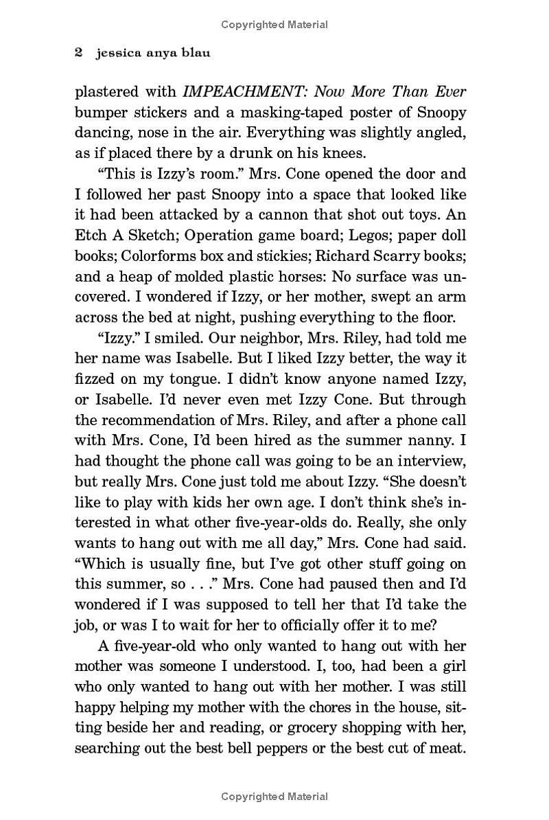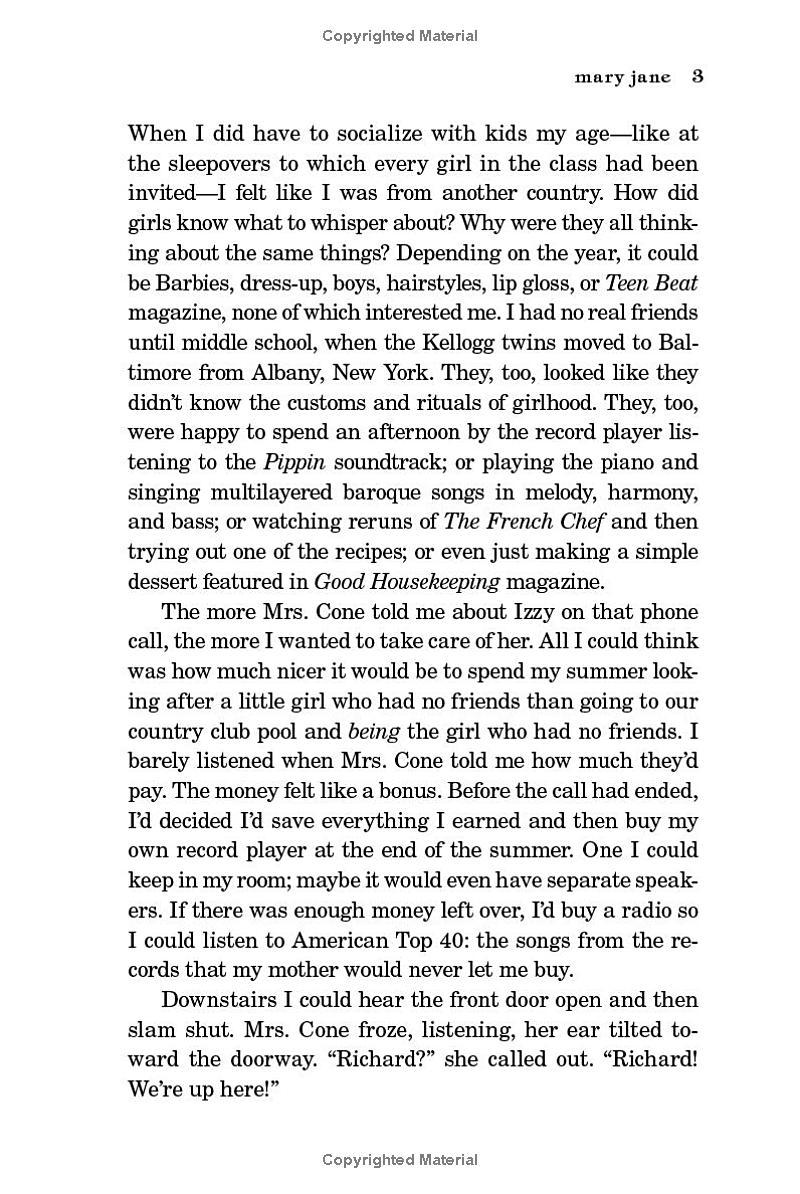 In 1970s Baltimore, fourteen-year-old Mary Jane loves cooking with her mother, singing in her church choir, and enjoying her family’s subscription to the Broadway Showtunes of the Month record club. Shy, quiet, and bookish, she’s glad when she lands a summer job as a nanny for the daughter of a local doctor. A respectable job, Mary Jane’s mother says. In a respectable house.