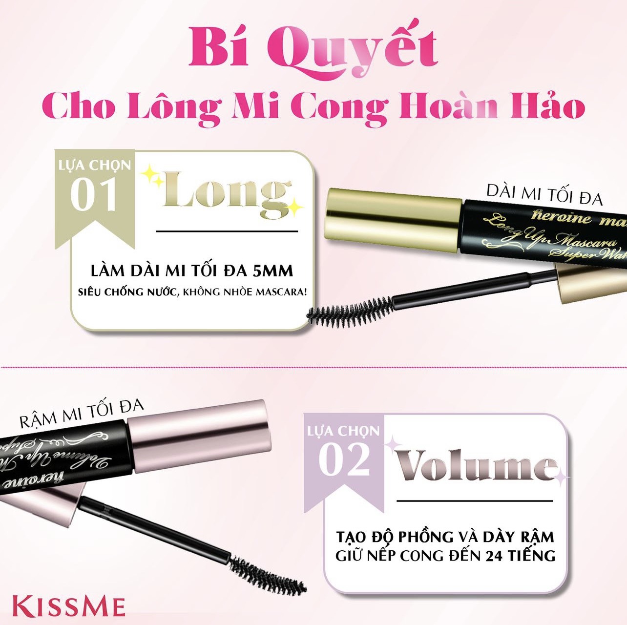 Mascara Làm Tơi Mi Không Trôi Kissme Heroine Make (1.8G) Thông tin sản phẩm: Số Lô: In trên sản phẩm Xuất Xứ: Nhật Bản Khối lượng tịnh: 1.8g HSD: 5 năm kể từ ngày sản