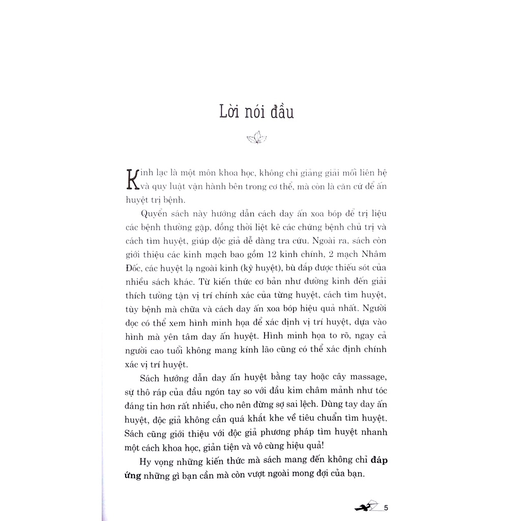 Đối mặt với ngày càng nhiều các chứng bệnh, mỗi người chúng ta càng phải biết cách phòng tránh. Massage, bấm huyệt đã có lịch sử từ lâu đời, và còn là một liệu pháp trị liệu đơn giản, ít tốn kém nên được rất nhiều người chọn lựa. Để có thêm kiến thức về các kinh lạc và huyệt vị, để biết cách tìm huyệt, day ấn phòng ngừa và chủ trị nhiều chứng bệnh phổ biến, mỗi nhà nên có một quyển Massage kinh lạc huyệt vị toàn thư.