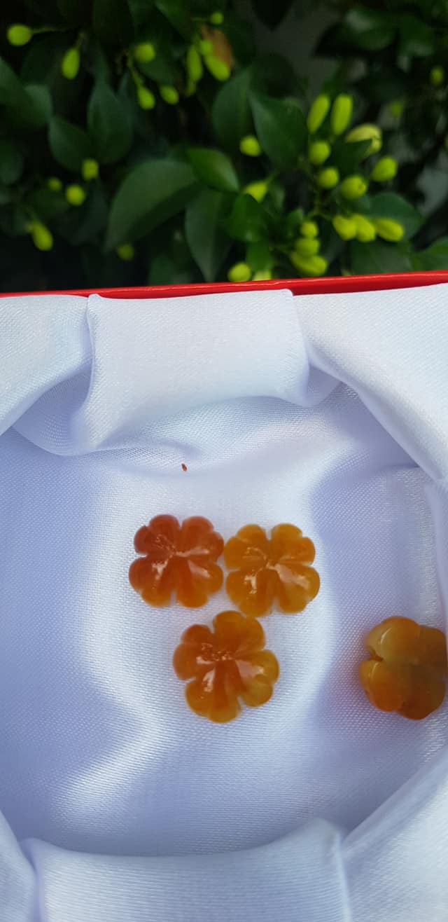 Mặt Bông Hoa cỏ 4 lá màu vàng cam nữ phối vòng tay,làm mặt nhẫn Chất liệu đá cẩm thạch size hạt 14mm x dầy 6mm Nữ về phối với vòng tay của mình đeo