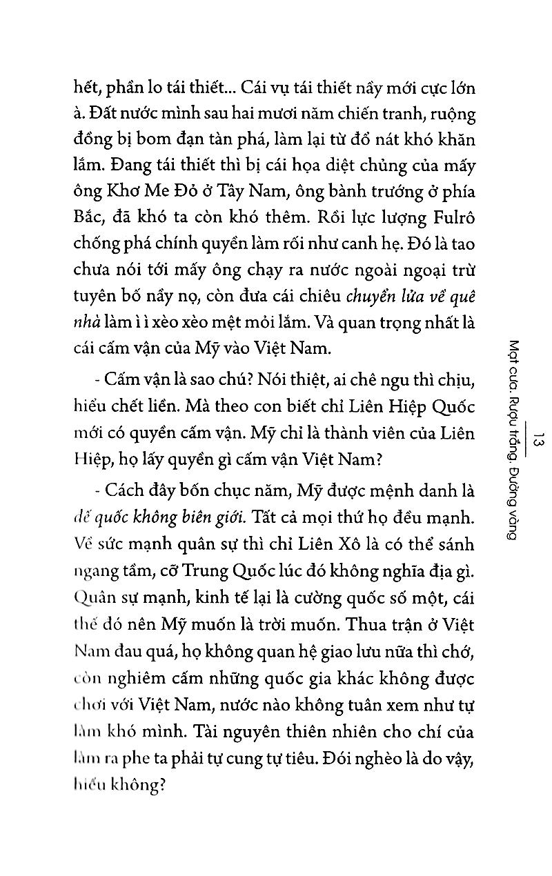 Trích đoạn Những chùm trái đỏ “Người xa vắng nhớ chăng cảnh này? Còn nhớ không gã trai bạn của những mùa vàng xưa? Đỉnh dùng răng cắn bật cái nút chai, ngửa cổ tu từng