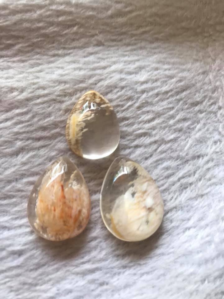 ✨MẶT DÂY CHUYỀN ĐÁ THẠCH ANH ƯU LINH TỰ NHIÊN HÌNH GIỌT NƯỚC MÀU BÔNG TRẮNG VÀNG CAO 23,5MM ĐK 17,5MM