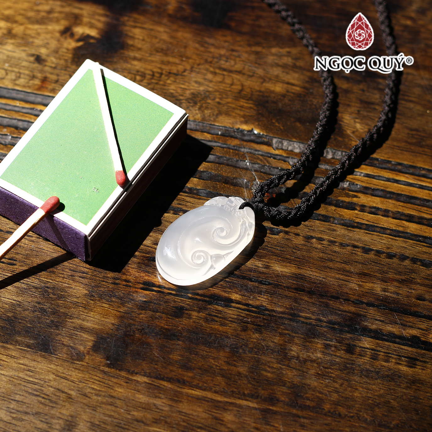 Mặt dây chuyền đá mã não trắng - Hợp mệnh kim, thủy | Ngọc Quý Gemstones |