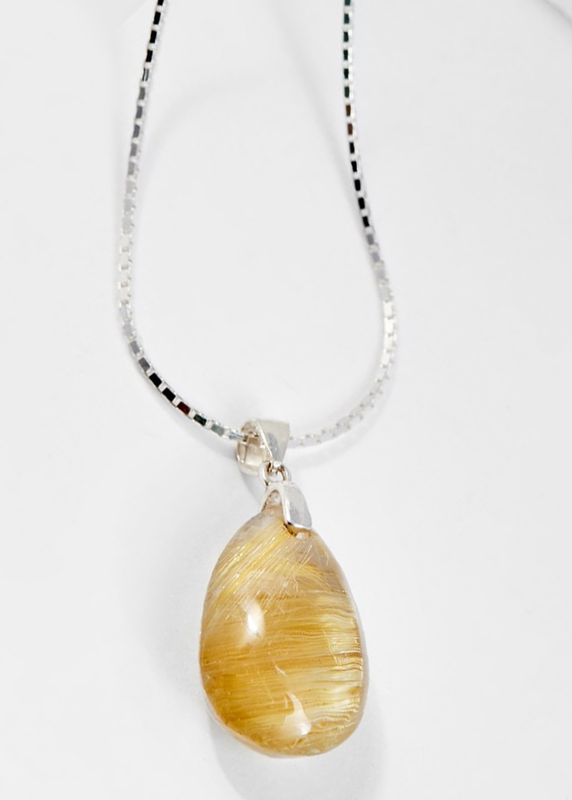 Mặt Dây Chuyền Phong Thủy Đá Thạch Anh Tóc Vàng Giọt Nước Tặng Dây Chuyền Bạc Mệnh Thổ, Kim