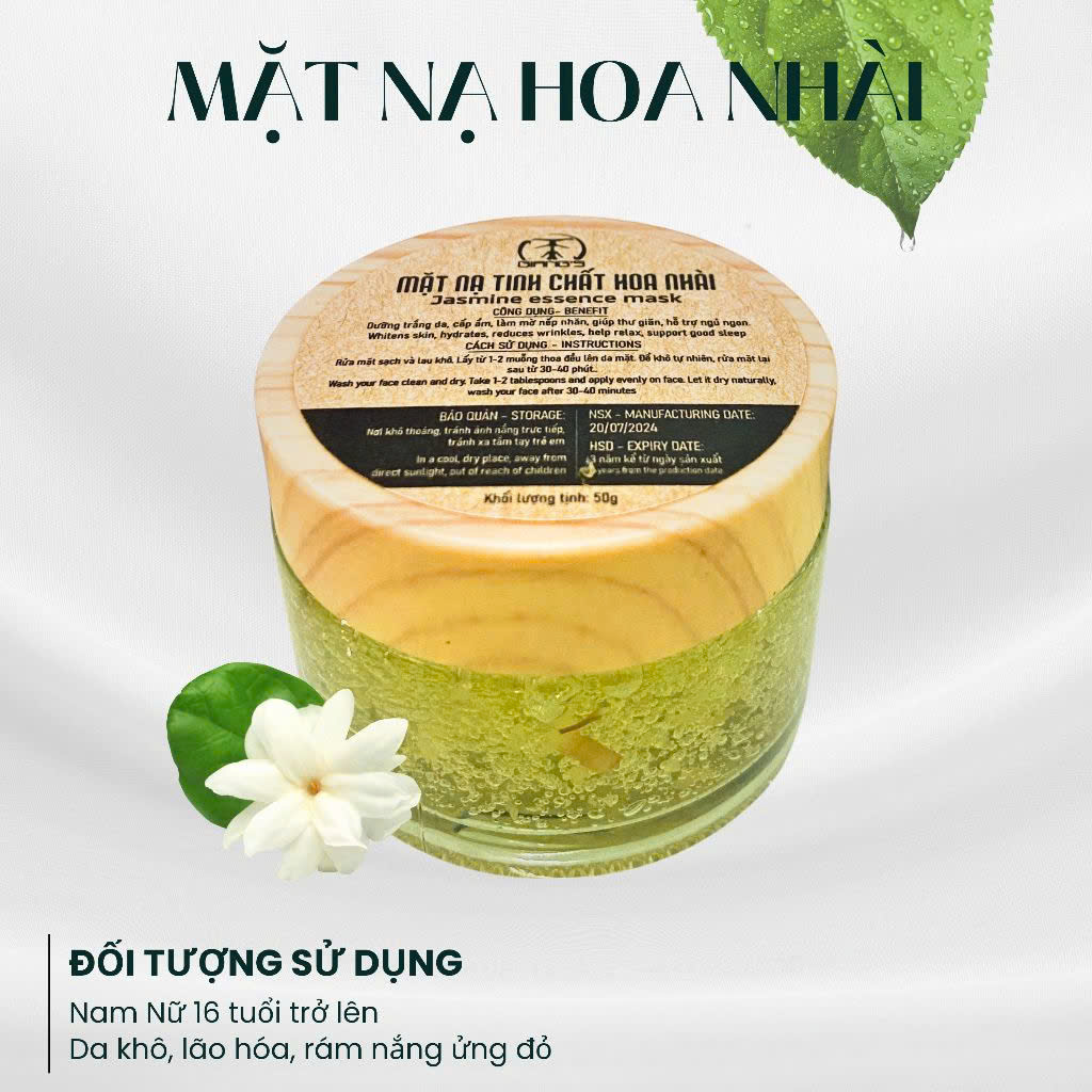 Mua tại TiktokMặt Nạ Hoa Nhài dưỡng trắng, cấp ẩm cho da mặt, cải thiện lão hóa da lọ 50ml dùng được nhiều lần 1, Công dụng