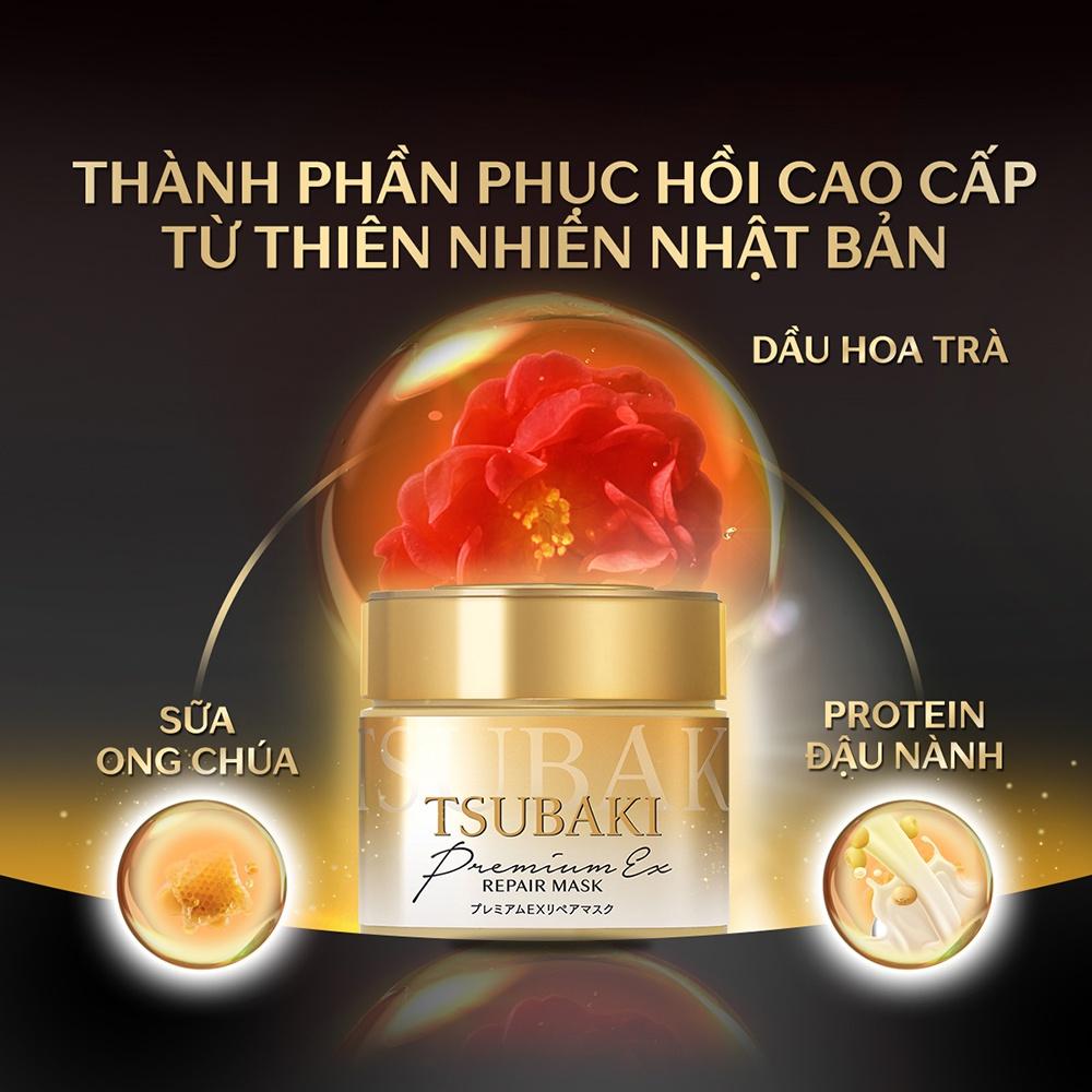 - Mặt Nạ Tóc Cao Cấp Tsubaki Phục Hồi Hư Tổn mang công thức hỗ trợ phục hồi nhanh, giúp bạn nuôi dưỡng từ gốc đến ngọn và sâu trong lõi tóc với những chiết xuất thiên nhiên giàu dưỡng chất, trả lại vẻ óng ả, bồng bềnh tự nhiên cho mái tóc, để bạn thêm tự tin, uốn nhuộm hay tạo kiểu theo ý thích.