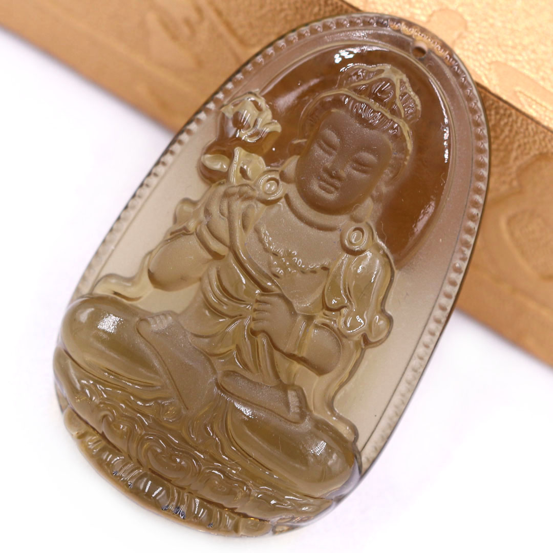 Thông tin sản phẩm: Mặt Phật Đại thế chí obsidian ( thạch anh khói ) 5 cm kèm vòng cổ dây dù nâu - mặt dây chuyền size lớn - size L, Mặt Phật bản mệnh