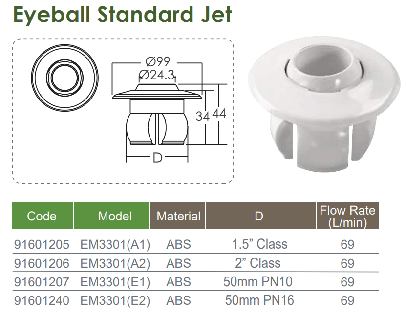 Mua tại TiktokMắt trả nước Emaux EM3301(A2) phi 60 Mắt trả nước Emaux EM3301(A2) phi 60 Lưu lượng: 4 m3/h Hãng sản xuất: Emaux – China -Mắt trả nước đáy bể là phụ kiện dùng để trả