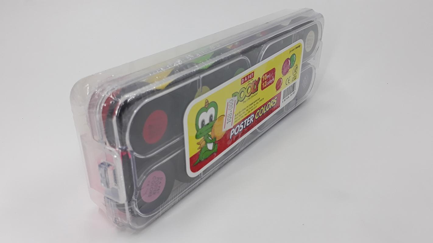 Sản phẩm gồm nhiều hộp nhỏ với 12 màu cơ bản, dễ dàng pha trộn thành các màu sắc khác nhau. Màu nước bền màu, lâu phai, không chứa chất độc hại, an toàn cho sức khỏe người dùng.