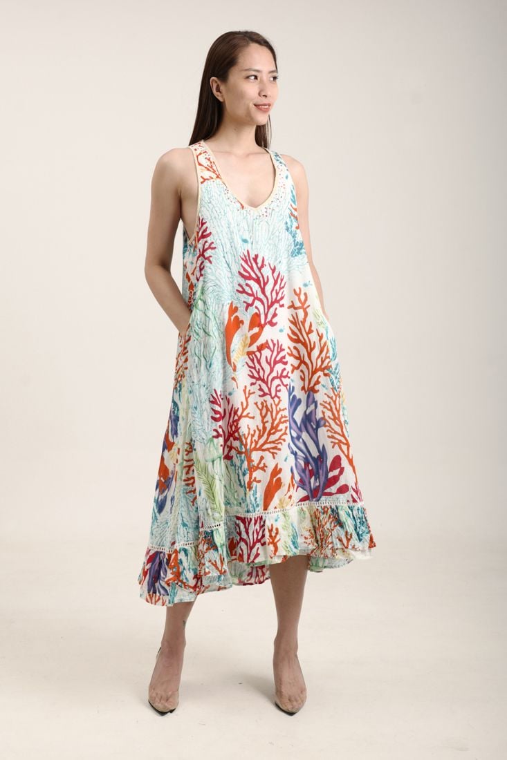 Đầm Midi Cotton Isla Bonita, chất liệu cotton mềm mại, phom suông. Dài đầm 115cm (45X115cm) Phù hợp đi biển, dạo phố, công sở, hoặc dự tiệc. Hướng dẫn sử dụng: Không sử dụng chất