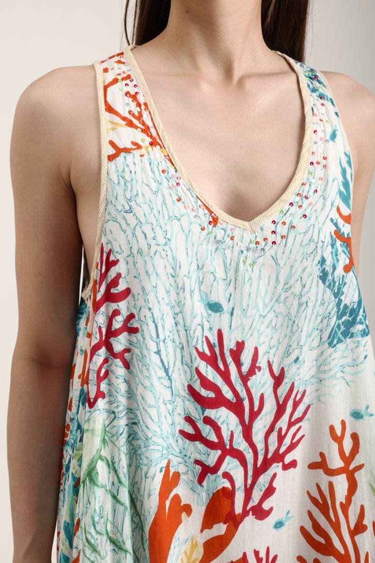 Maxi Hoa Kết Cườm Cotton Isla Bonita, chất liệu cotton mềm mại, hoa trang nhã. Nổi bật phần ngực kết cườm tinh tế. Phom suông. Dài đầm 125cm (45x125) Phù hợp đi biển, dạo phố,