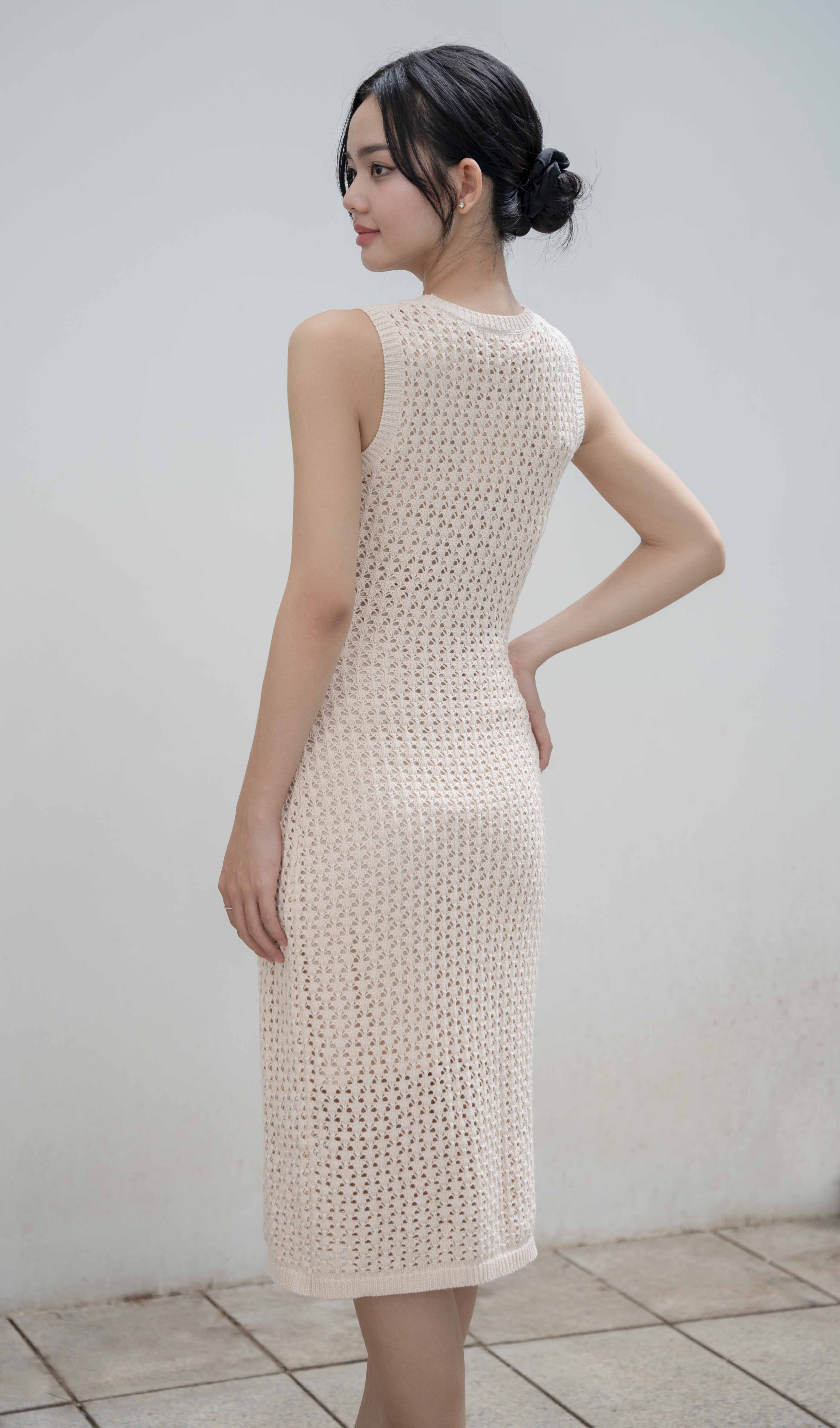 Đầm Midi Dài Tay Kết Hạt Cotton Isla Bonita, chất liệu cotton mềm mại, thân trước kết hạt nổi bật, xẻ tà cao 2 bên hông, chân váy phối màu độc đáo. Có túi 2