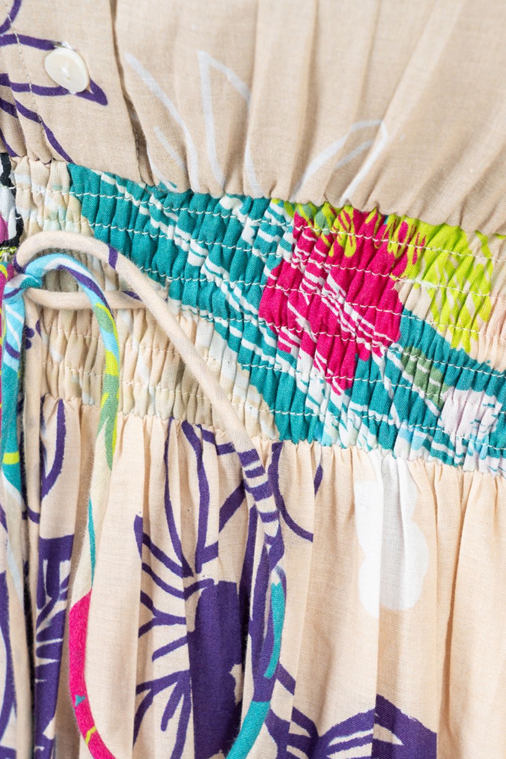 Maxi Hoa Phối Ren Ánh Bạc Cotton Isla Bonita chất liệu cotton cao cấp, mềm mại. Nổi bật phần cổ áo phối ren kết ánh bạc, nơ tua rua màu hồng nữ tính. Họa tiết