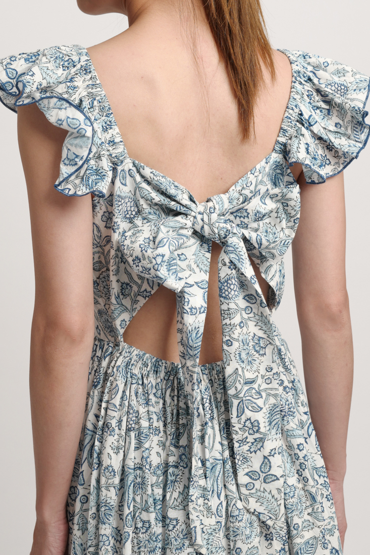 Maxi Đuôi Cá Hở Lưng Cotton Isla Bonita, chất liệu cotton cao cấp trên nển hoa nổi bật. Phần lưng sau hở cột nơ độc đáo. Phần thân trên có lớp lót. Eo thun co