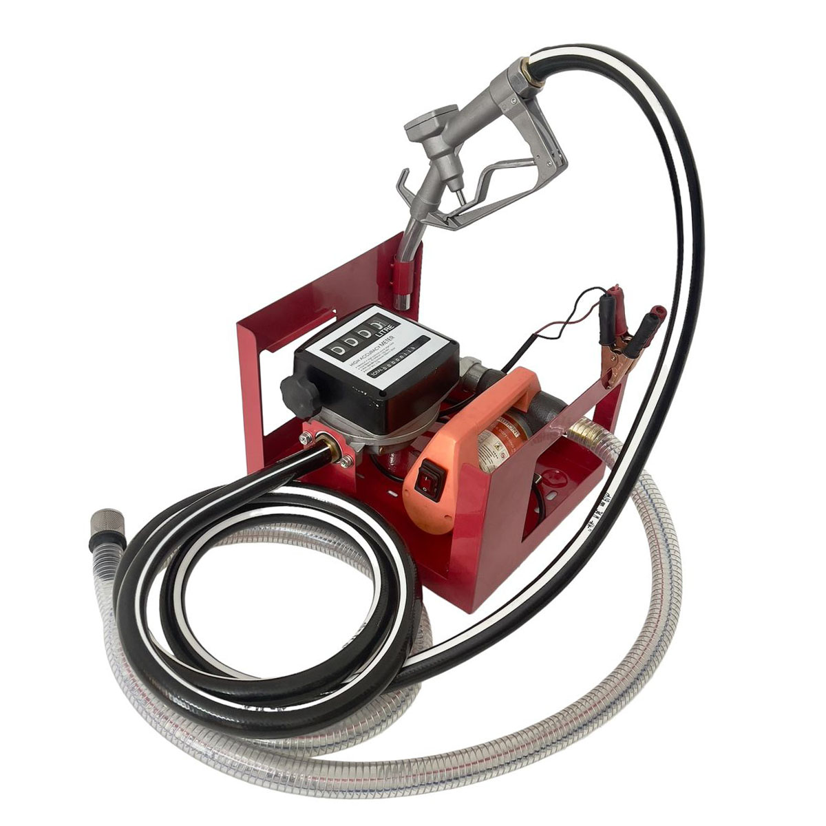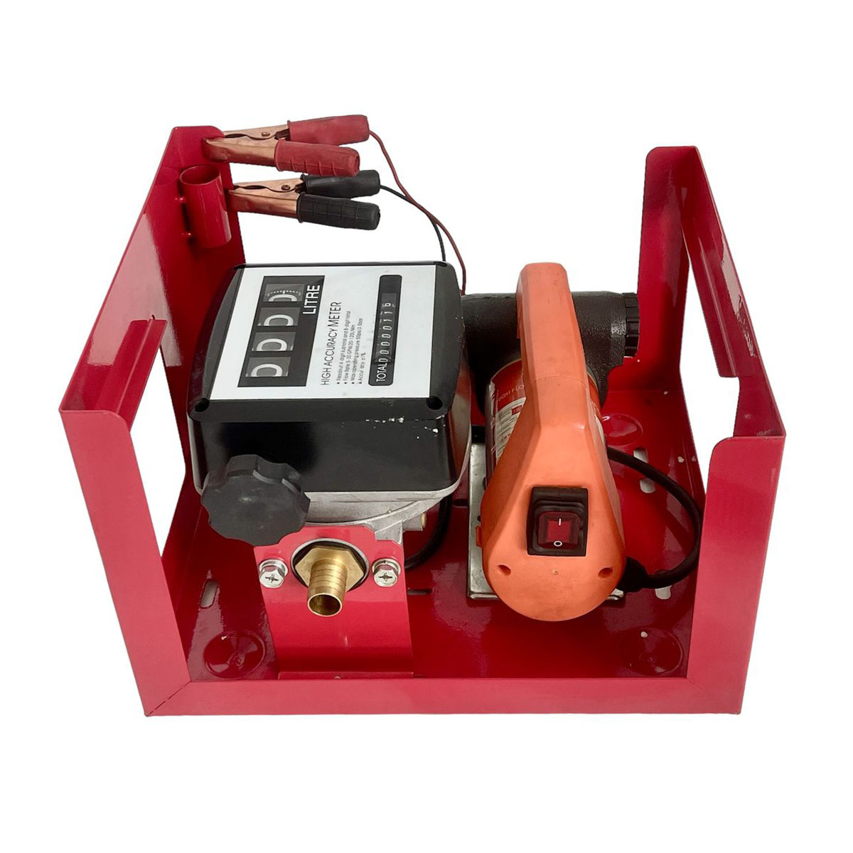 Thiết kế chuyên dụng với khung giá đỡ và PK sung bơm, vòi dẫn Điện AC 12V, 24V Có đồng hồ đo lưu lượng Bơm Diesel, Dầu Hoả, dầu Thủy lực