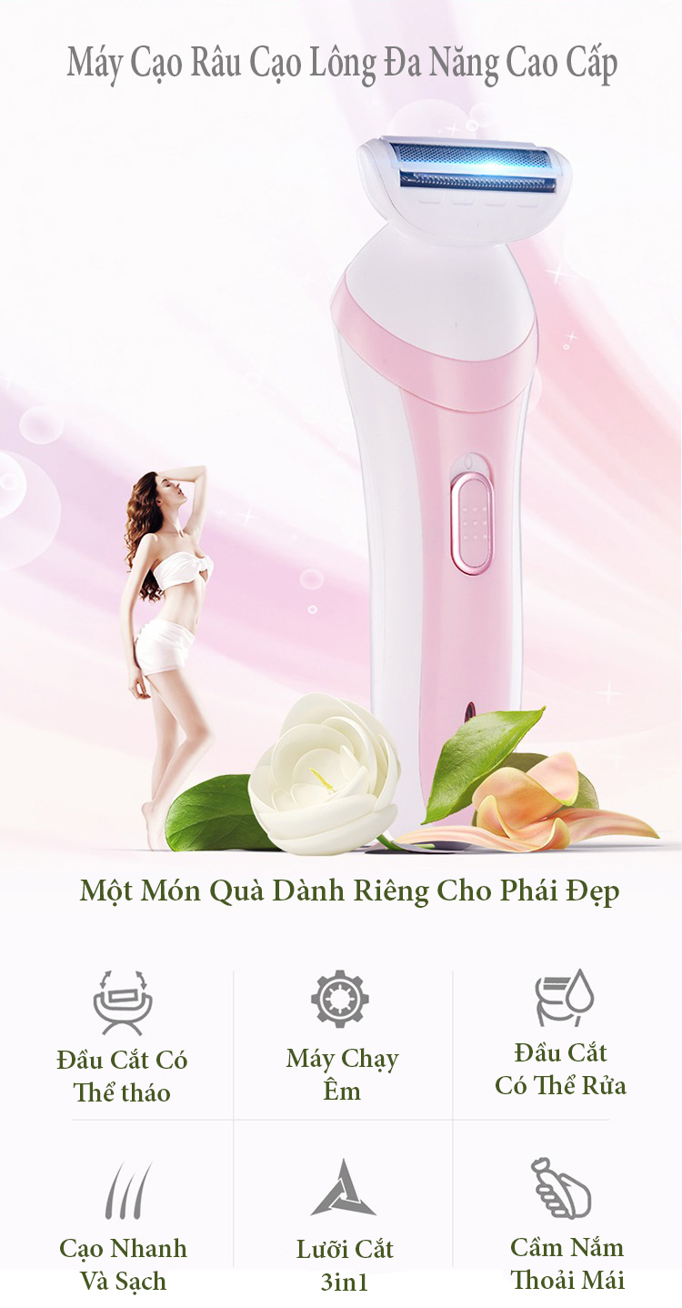 - Máy cạo lông toàn thân đa năng mang tính cách mạng này hoàn hảo cho những vùng nhạy cảm nhất của bạn như bikini, nách, đầu gối và mắt cá chân. Không có vết sẹo hoặc kích ứng thường gây ra khi cạo bằng dao cạo.