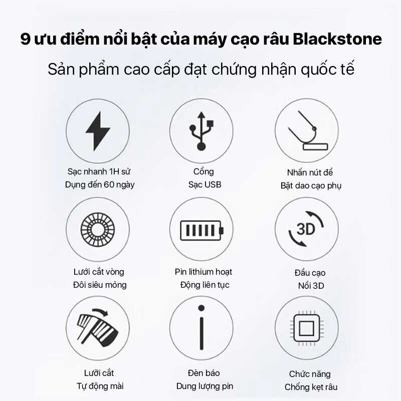 THÔNG TIN SẢN PHẨM: Model: Blackstone3 Công suất định mức: 5W Điện áp định mức: 5V Thời gian sạc: Tối đa 120 phút Tuổi thọ pin: Tối đa150 phút Đánh giá chống nước IPX7, hỗ