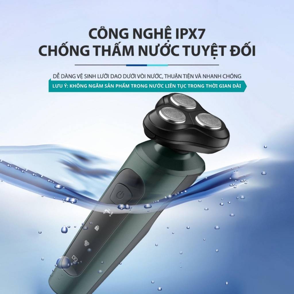 - Chống nước IPX7, có thể rửa dưới vòi nước để dễ dàng vệ sinh. Sau khi sử dụng, đầu cắt sẽ bật ra bằng một phím và rửa trực tiếp bằng nước.