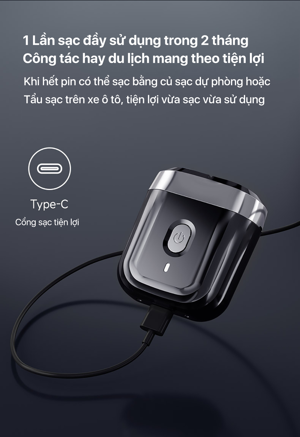 Pin 350mAh sử dụng cạo râu liên tục 60 phút đến 2 tháng chỉ cần sạc đầy trong 1,5 giờ qua cổng Type-C.