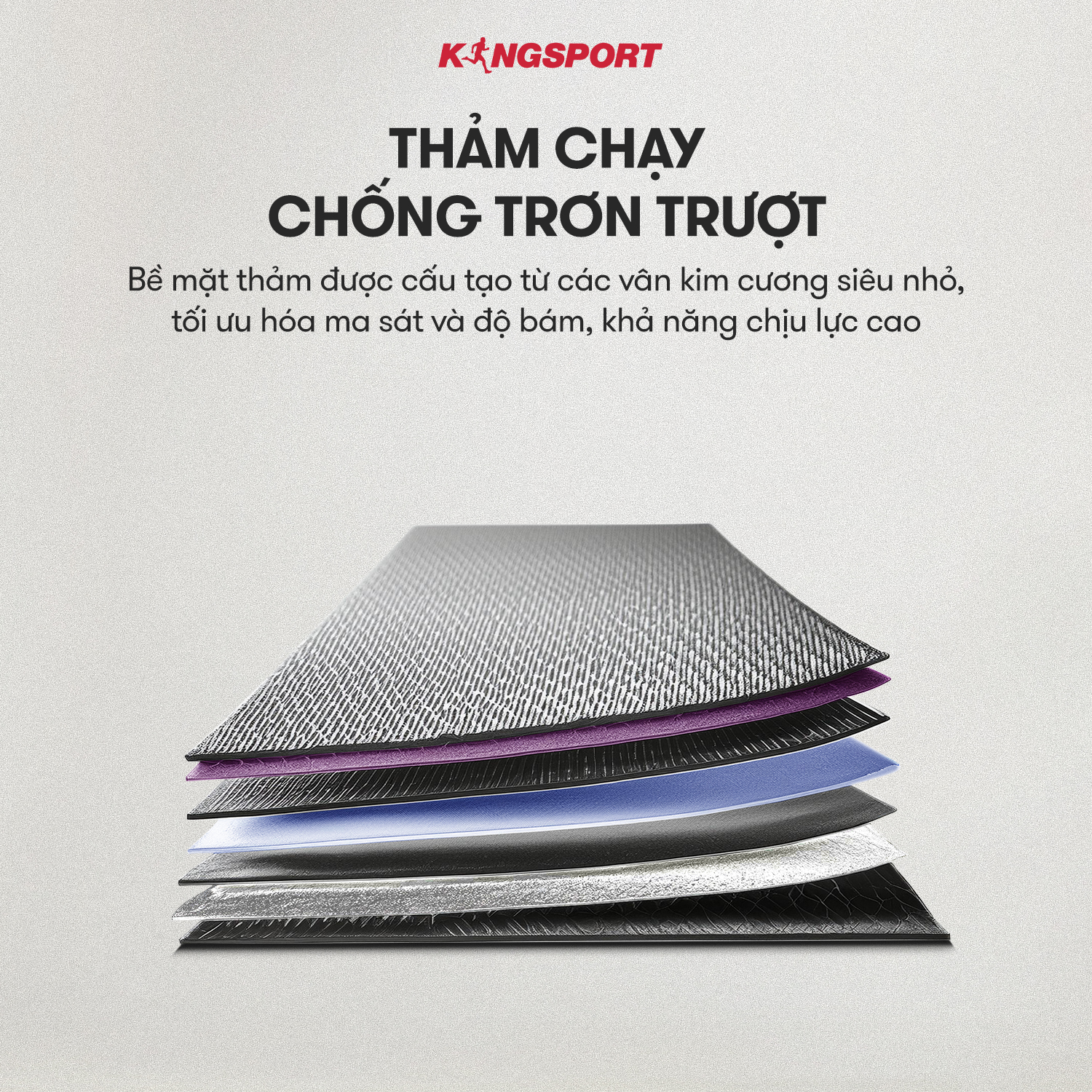 ️ Thảm chạy Diamond nhiều lớp chống ồn và trơn trượt, rộng rãi lên đến 1260x450 mm
