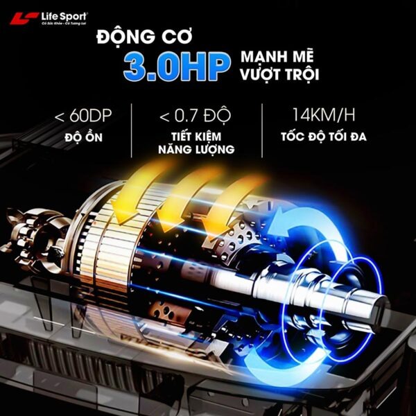 Động cơ của máy chạy bộ LS-3000 lên đến 3.0 HP, mạnh mẽ để hoạt động liên tục, tản nhiệt cho máy tốt, hỗ trợ rèn luyện tối ưu. Tốc độ chạy lên đến 14km giúp người dùng thoải mái luyện tập một cách tối đa nhất.