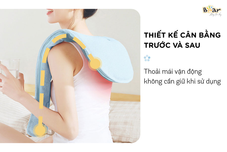 Máy đấm lưng Bear AMQ-A01X1 (MA-B01V1) thiết kế dạng đai cân bằng thông minh, sử dụng công nghệ Nhật Bản mô phỏng chân thật nhất phương pháp đấm massage như tay người giúp bạn thư giãn vùng cổ,