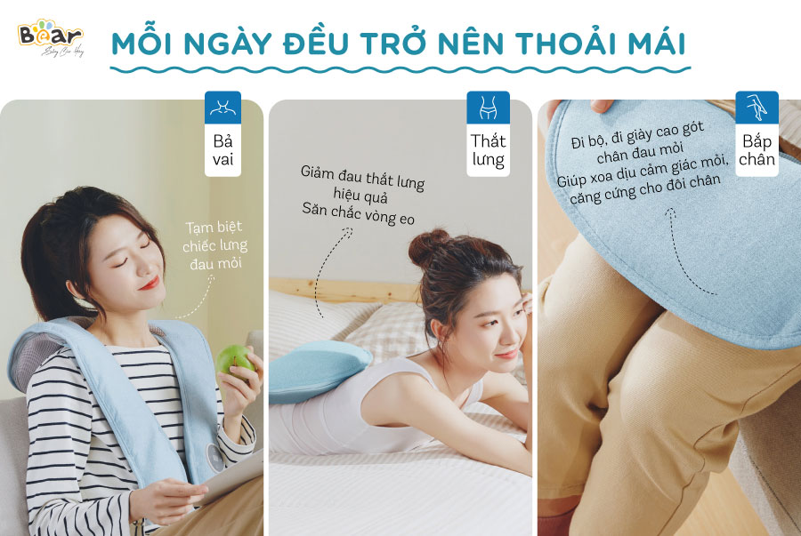 Sở hữu thiết kế thông minh, tác dụng thư giãn hoàn hảo máy đấm lưng Bear là sản phẩm thích hợp cho nhiều người dùng khác nhau. Nhân viên văn phòng, học sinh, phải ngồi lâu khi sử dụng máy sẽ làm giảm mệt mỏi, công việc trở nên nhẹ nhàng, làm việc và học tập hiệu quả hơn. Người cao tuổi: Máy Massage giúp tận hưởng cảm giác thư giãn tuyệt vời, giảm đau mỏi vai gáy và đau nhức cơ vô cùng tốt.