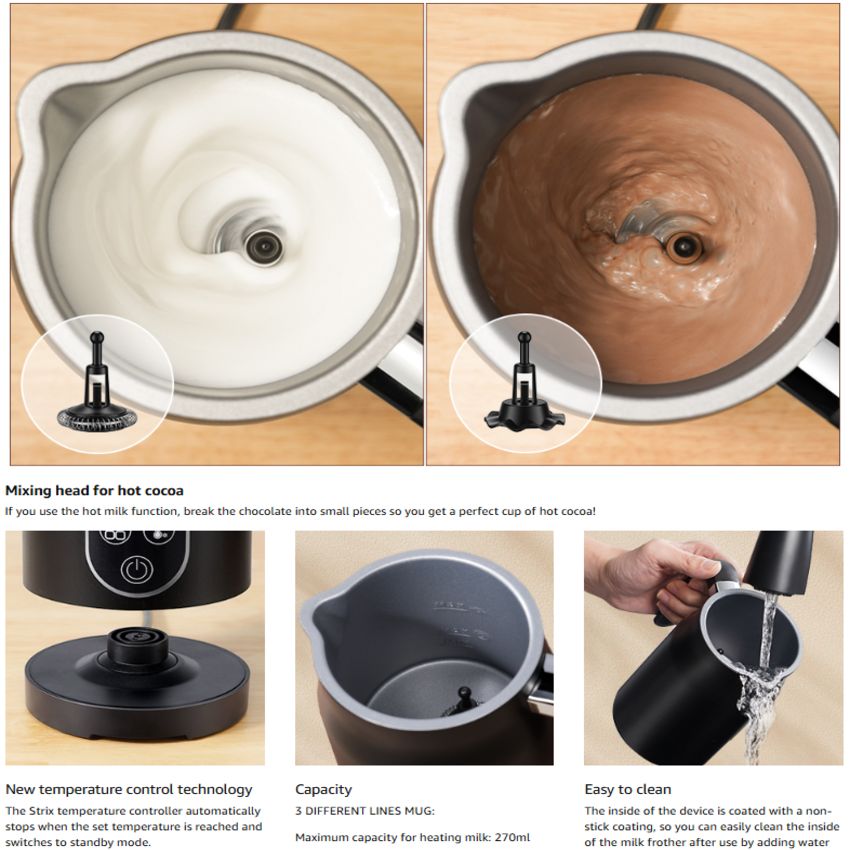 - Dung tích tạo Bọt Sữa: 140ML, Làm Nóng: 270ML Chức năng: 4 trong 1 Tạo bọt sữa dày đặc ấm, Tạo bọt sữa mỏng ấm, Làm ấm sữa, Tạo bọt sữa lạnh