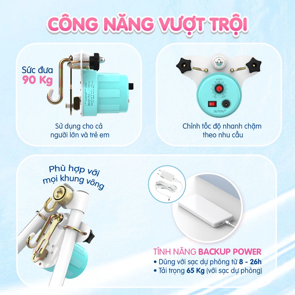 MÁY ĐƯA VÕNG TỰ ĐỘNG AUTORU 2025 - CÓ TÍNH NĂNG HẸN GIỜ VÀ NHẠC RU NGỦ
