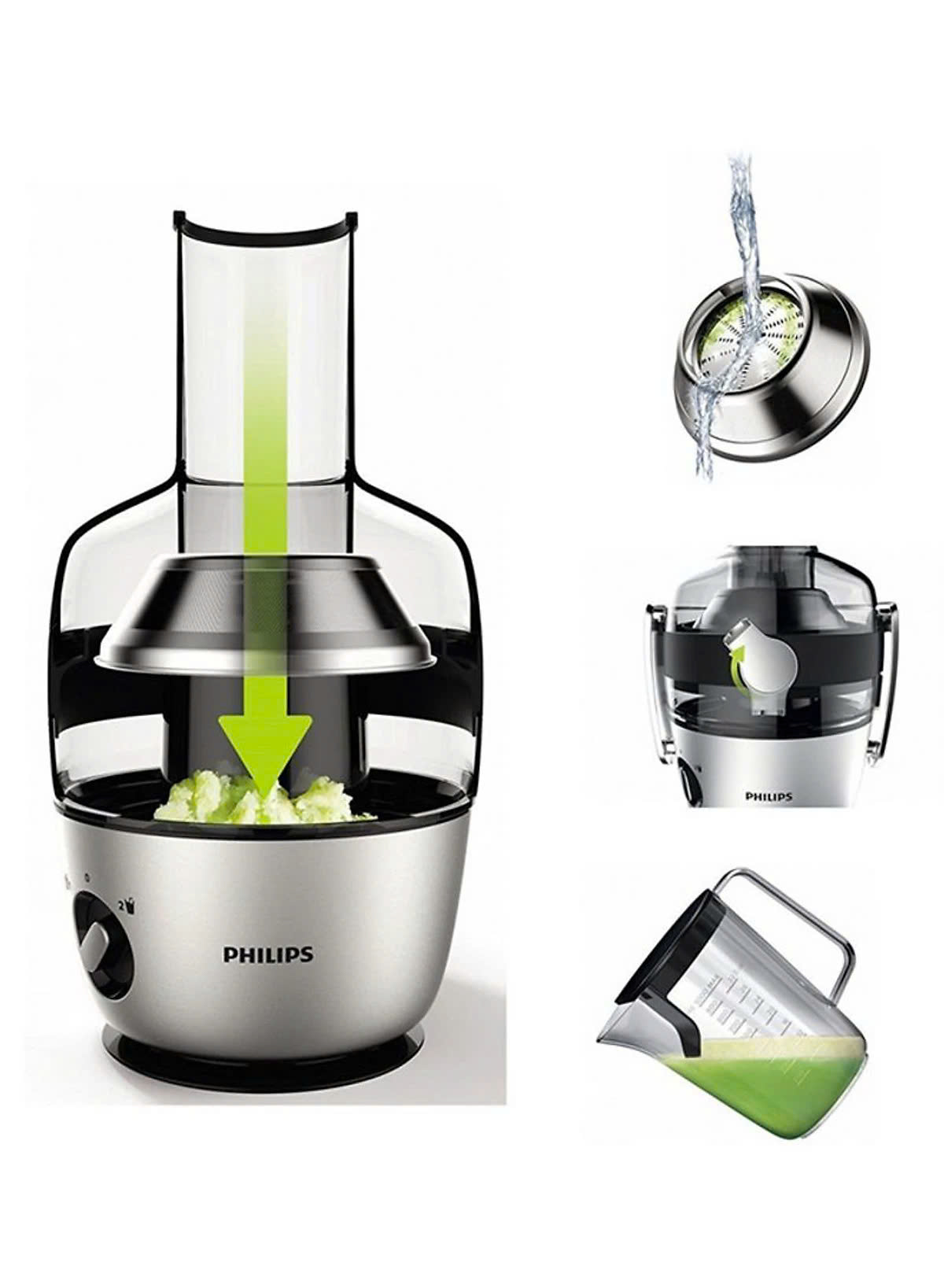 Điểm nổi bật - Máy ép trái cây Philips thiết kế nhỏ gọn, chắc chắn với vỏ thân máy bằng Alluminium - Chức năng tự ngắt điện khi động cơ hoạt động quá lâu -