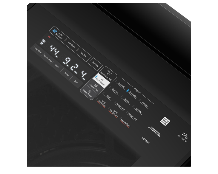 - Hình ảnh chỉ mang tính chất minh họa Khối lượng giặt và chương trình giặt – Khối lượng giặt 17 kg, phù hợp với nhu cầu giặt giũ của gia đình trên 7 thành viên hoặc gia đình nhiều thành viên hơn nhưng nhu cầu giặt giũ hàng ngày thấp. – Tích hợp sẵn 12 chương trình giặt tiện lợi giúp người dùng lựa chọn chương trình giặt phù hợp với chất liệu quần áo khác nhau. – Trong đó có chương trình giặt sơ Prewash+ có nhiệm vụ loại bỏ sơ bộ các loại vết bẩn thông thường trước khi qua bước giặt chính. Tùy thuộc vào chất liệu quần áo và tình trạng vết bẩn mà bạn có thể điều chỉnh thời gian, tốc độ giặt hợp lý.